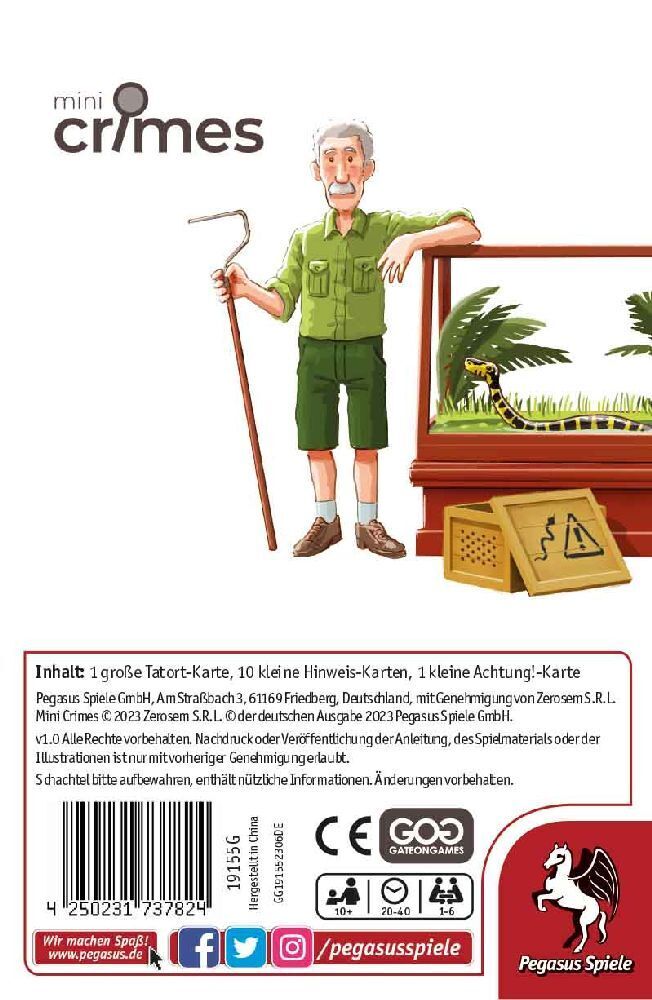 Die MiniCrimes Fälle sind kooperative Krimispiele, in denen die Spielenden ihre Beobachtungsgabe und ihre detektivischen Fähigkeiten unter Beweis stellen müssen, um einen mysteriösen Fall zu lösen. Sie untersuchen dabei den Tatort und bis zu 10 Hinweise, die s...
