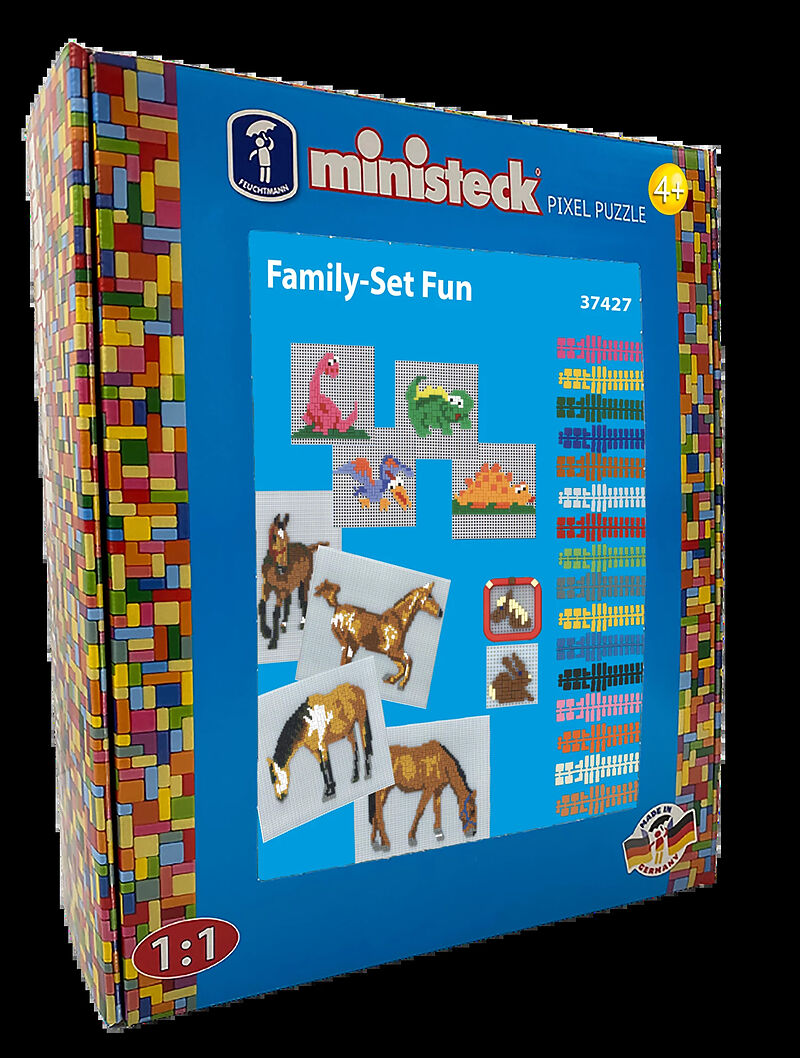 Ministeck fördert die Feinmotorik, abstraktes Denken sowie Konzentration und lässt der Fantasie freien Lauf. Durch die Zapfen auf der Rückseite lassen sie sich auf der gelochten Kunststoffplatte nach Lust und Laune befestigen.