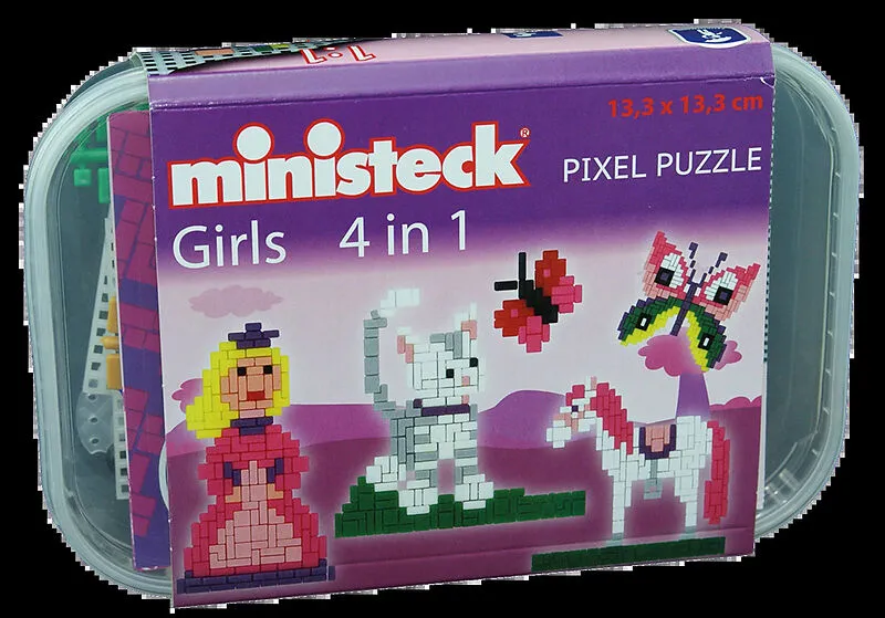 Ministeck fördert die Feinmotorik, abstraktes Denken sowie Konzentration und lässt der Fantasie freien Lauf. Durch die Zapfen auf der Rückseite lassen sie sich auf der gelochten Kunststoffplatte nach Lust und Laune befestigen.