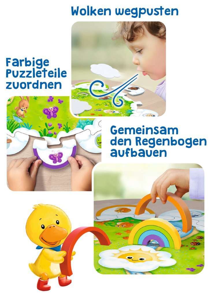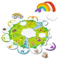 Bei diesem allerersten Spiel zum Farbenlernen helfen die Kinder gemeinsam, zu jeder Farbe ein passendes Tier zu finden und an den Spielplan anzupuzzeln, bis am Ende die Sonne erscheint und ein wunderschöner dreidimensionaler Regenbogen über der bunten Blumenwi...