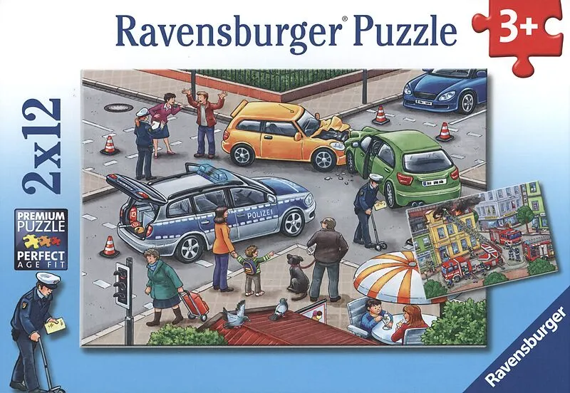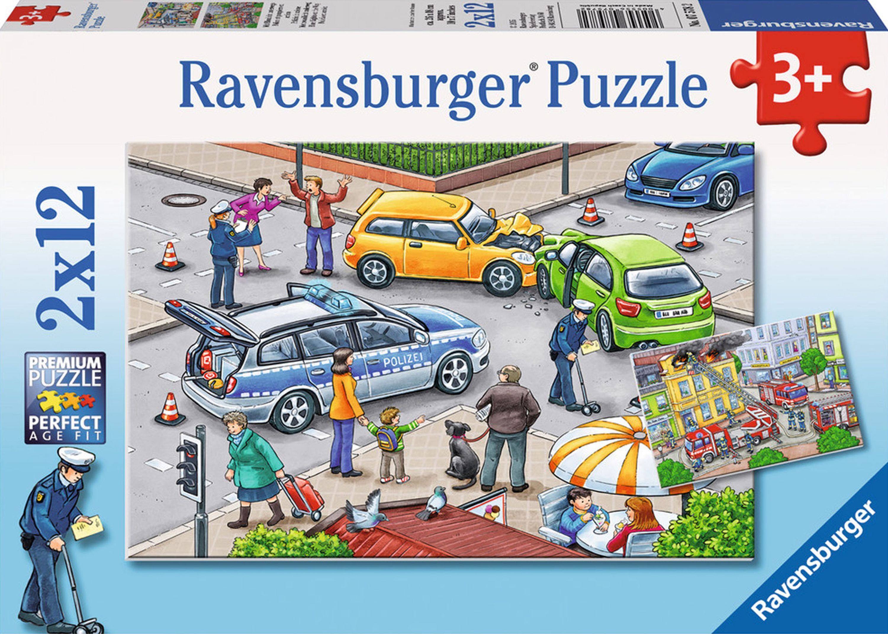 Ravensburger Kinderpuzzle - 07578 Mit Blaulicht unterwegs - Puzzle für Kinder ab 3 Jahren, mit 2x12 Teilen Egal ob Pferd oder Kätzchen, Bagger oder Feuerwehrauto - die farbenfrohen Motive der Ravensburger Puzzlesets 2x12 Teile begeistern Mädchen und Jungen ab ...