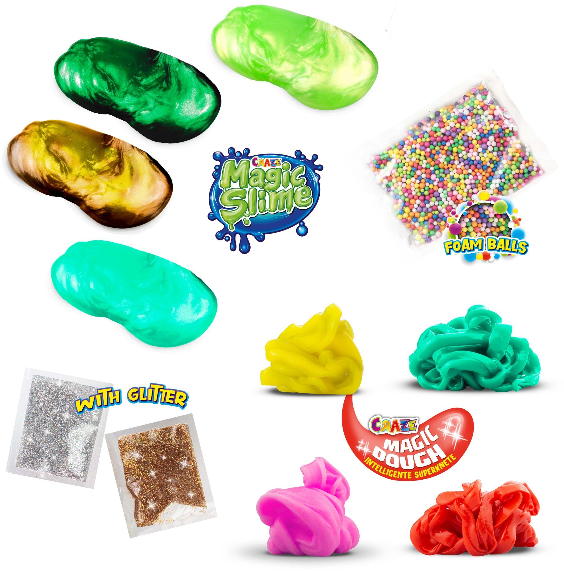 Mix Compound Studio mit 2 unterschiedlichen Knet- und Schleimmassen + Glitzer und Perlen in einem Set. Beinhaltet: Magic Slime und Magic Dough