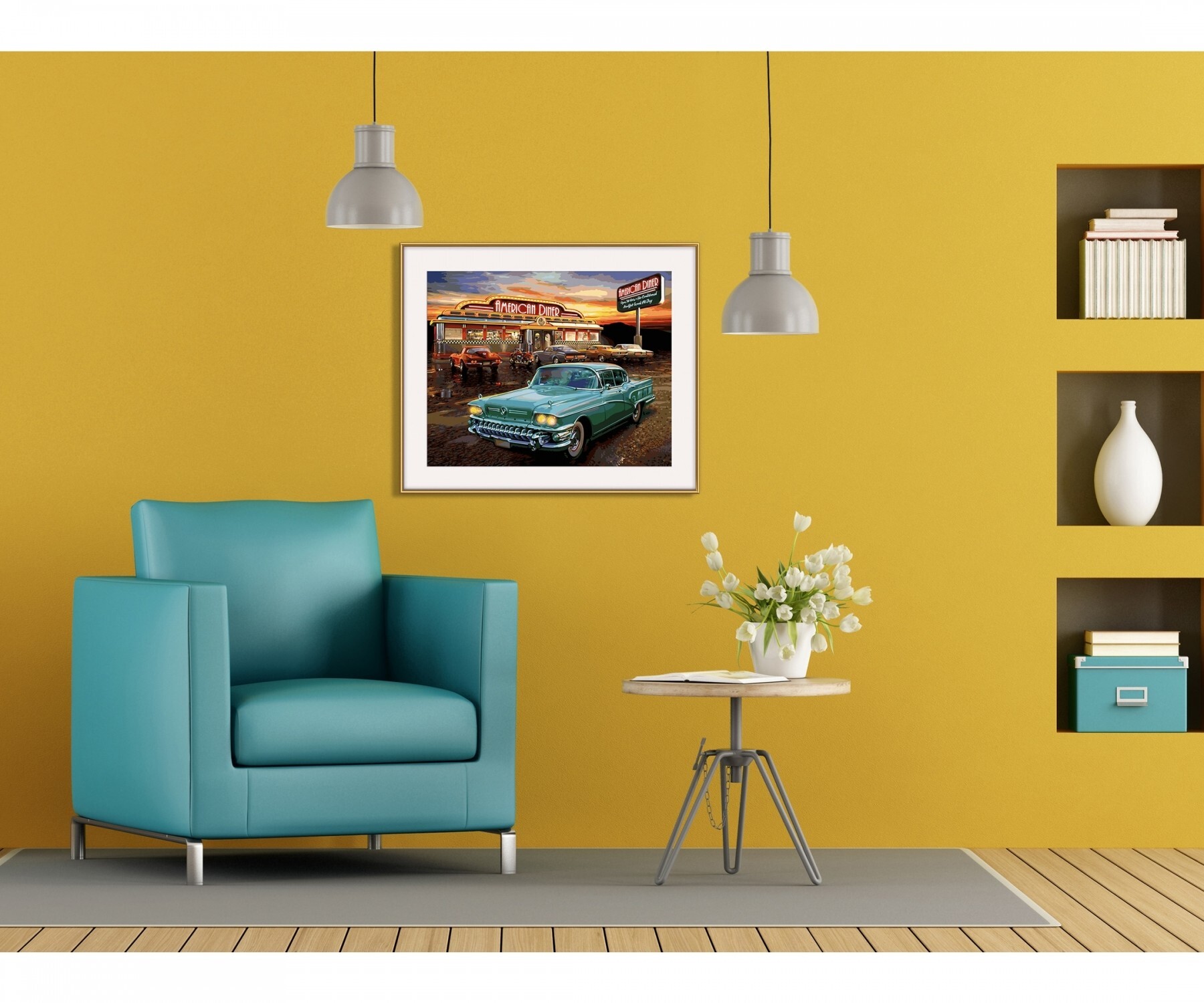 Das Fast Food Restaurant Diner und der legendäre Straßenkreuzer im Stil der 50er Jahre gelten auch heute noch als typische Vertreter des American Way of Life" und des amerikanischen Traums von Freiheit und Unabhängigkeit. Das Motiv ist ein Stimmungsbild, in de...
