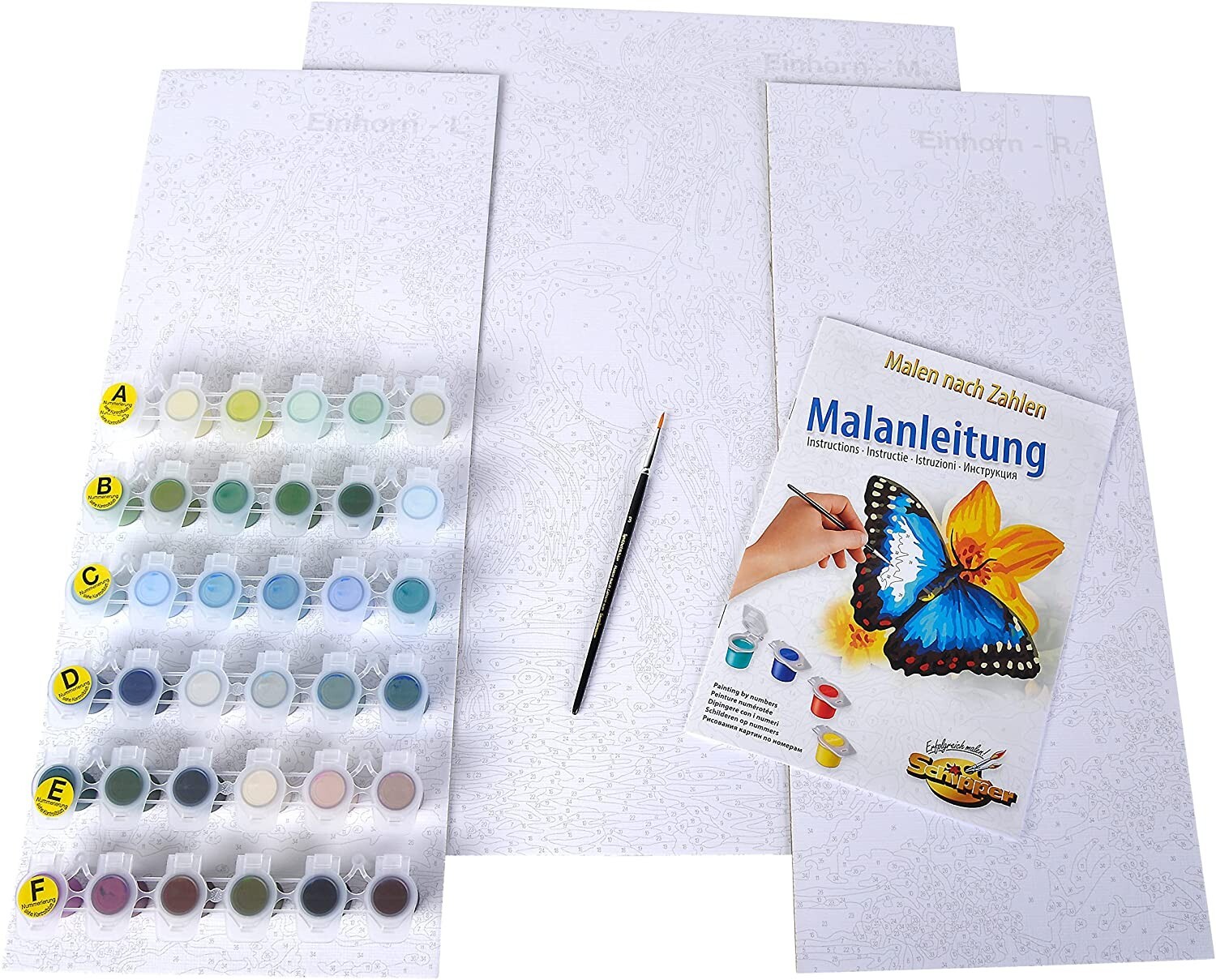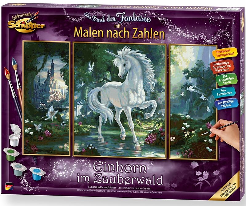 Schipper - Meisterklasse Triptychon; Malen nach Zahlen - Maltafel 50 x 80 cm mit Leinenstruktur (2 Malvorlagen 20 x 50 cm, 1 Malvorlage 40 x 50 cm). Malfertig vorgemischte Acrylfarben und Malpinsel in guter Qualität mit Kontrollblatt und Anleitung. Sprachen: D...