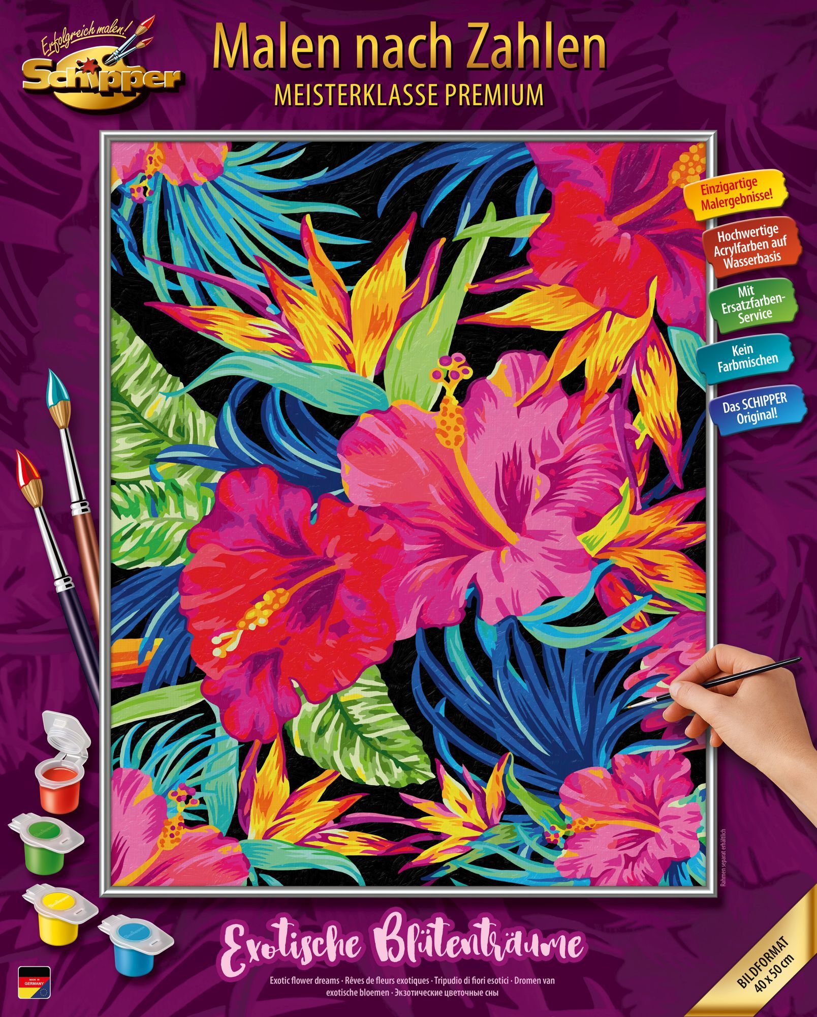 Schipper - Meisterklasse Premium; Malen nach Zahlen - Maltafel 40 x 50 cm mit Leinenstruktur. Malfertig vorgemischte Acrylfarben und Malpinsel mit Kontrollblatt und ausführlicher Anleitung. Sprachen: D/GB/F/I/NL/RUS Blüten üben nicht nur auf Insekten eine groß...