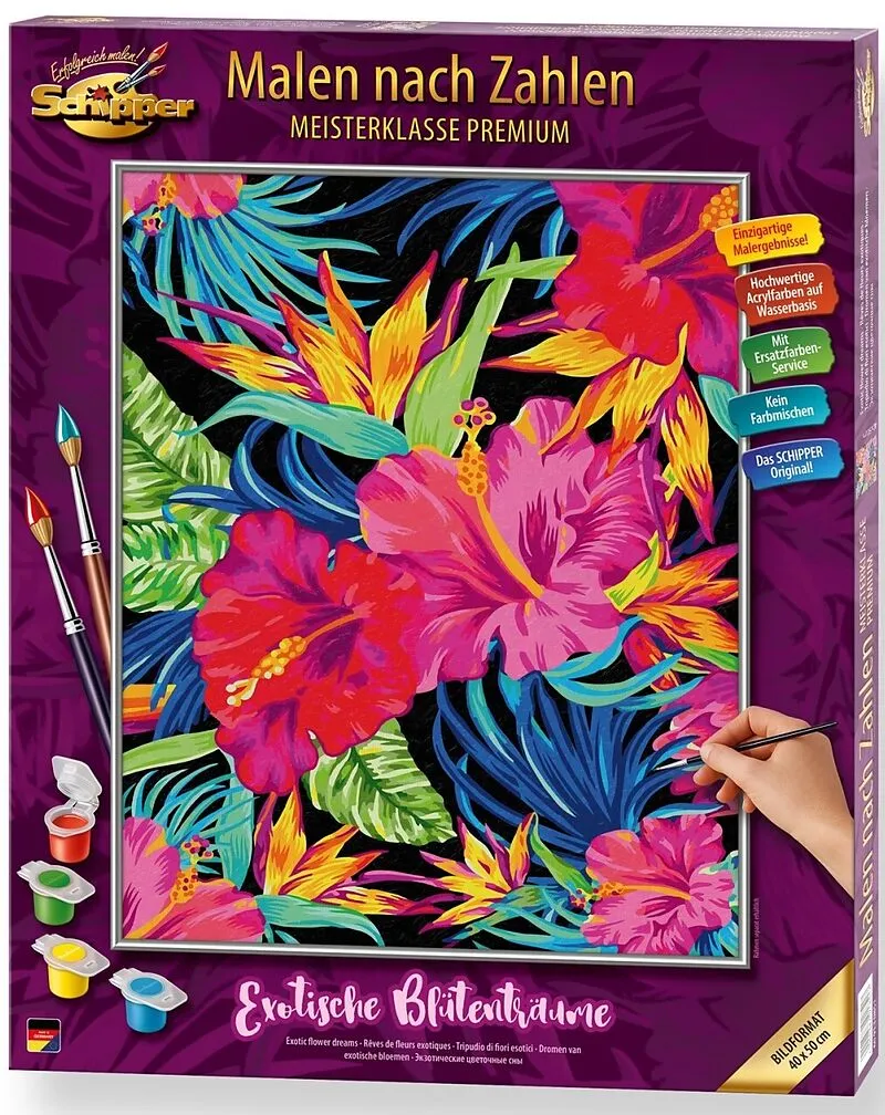 Schipper - Meisterklasse Premium; Malen nach Zahlen - Maltafel 40 x 50 cm mit Leinenstruktur. Malfertig vorgemischte Acrylfarben und Malpinsel mit Kontrollblatt und ausführlicher Anleitung. Sprachen: D/GB/F/I/NL/RUS Blüten üben nicht nur auf Insekten eine groß...