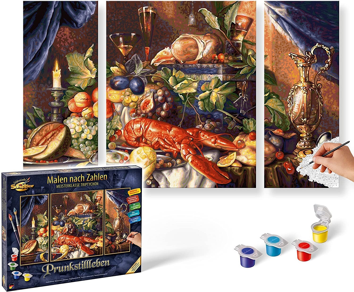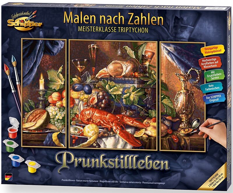 Schipper - Meisterklasse Triptychon; Malen nach Zahlen - Maltafel 50 x 80 cm mit Leinenstruktur (2 Malvorlagen 20 x 50 cm, 1 Malvorlage 40 x 50 cm). Malfertig vorgemischte Acrylfarben und Malpinsel in guter Qualität mit Kontrollblatt und Anleitung. Sprachen: D...