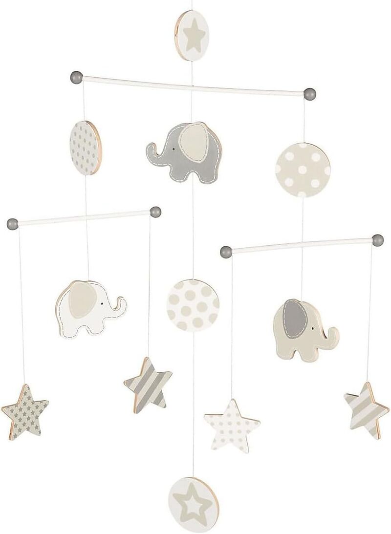 Mobile trifft Lifestyle. Sympathische, knuddelige Elefanten schweben umrahmt von dekorativen Sternen in beruhigendem Entschleunigungsmodus über dem Kinderbett. Da kann Kind nur entspannen und friedvoll ins Reich der Träume einschlummern. Material: Holz Artikel...