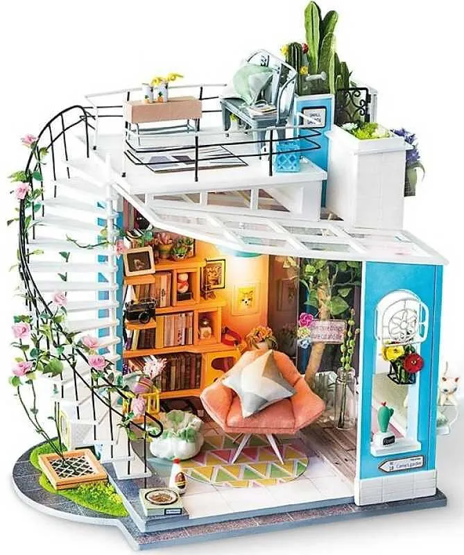 Ab 14 J., Dachboden Zimmer mit unzähligem Zubehör, und LED- Beleuchtung, riesiger Bastelspass, aufgebaut 23,0 x 16,0 x 26,0 cm
