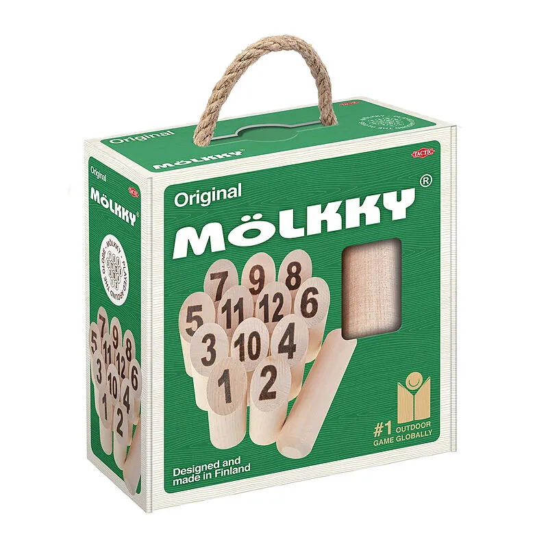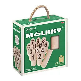 Bei Mölkky müssen 12 nummerierte Kegel mit dem Wurfholz so umgeworfen werden, dass man letztendlich genau 50 Punkte erreicht. Mölkky ist eine lustige Kombination aus Zufall und Treffsicherheit, perfekt für den Heimgebrauch, leicht zu erlernen und spannend zu s...