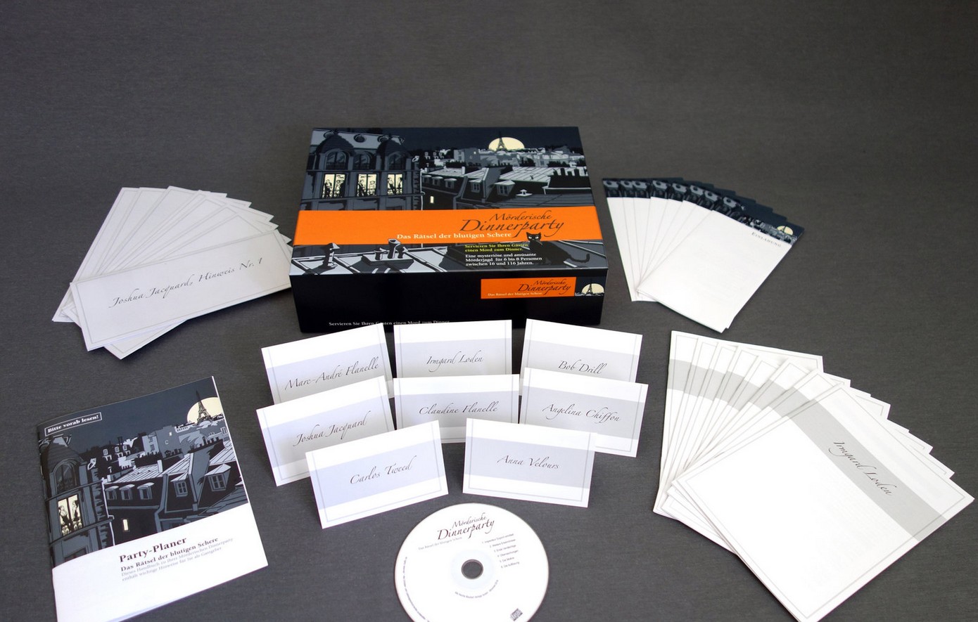 Mörderische Dinnerparty: das Krimidinner für Zuhause. Spannende Storys, schillernde Rollen und ein Partykonzept, bei dem die Organisation des Abends zum Spaß dazugehört. Paris, 1965. Henri Flanelle, der weltberühmte Modeschöpfer, wird mit einer Schneiderschere...