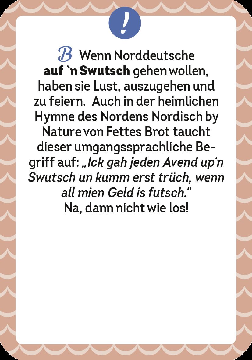 Witziges Quiz-Kartenspiel rund um die norddeutsche Mundart Bei diesem unterhaltsamen Fragespiel für Groß und Klein müsst ihr 50 lustige, skurrile und typische Begriffe der norddeutschen Dialekte erraten: Was sind eigentlich »Bagaluten«, wann holt man den »Rum...