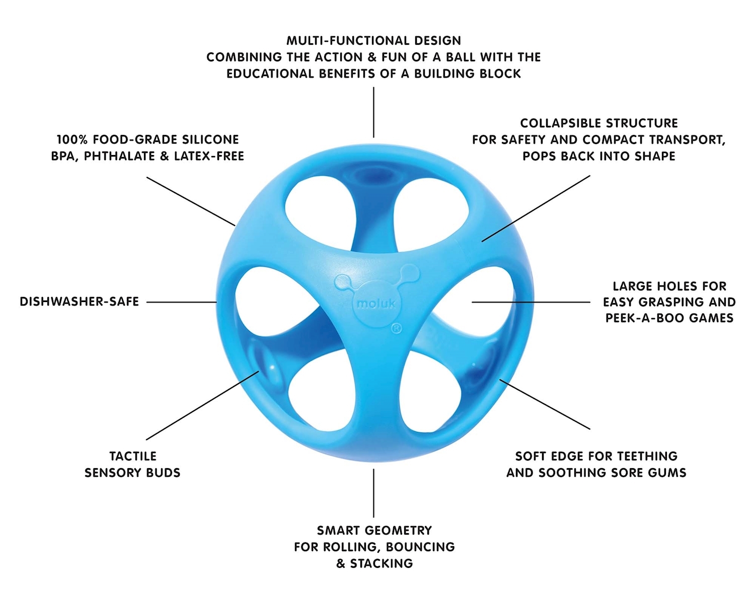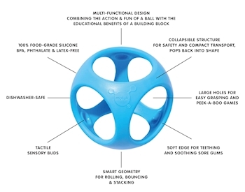 Oibo ist ein elastisches, stapel-, roll- und verformbares Greif- und Beißspielzeug für Babies und Kinder jeden Alters. Oibos Geometrie ist halb Kugel halb Würfel und kombiniert somit Action und Spass eines Balls mit den konstruktiven Möglichkeiten eines Bauste...
