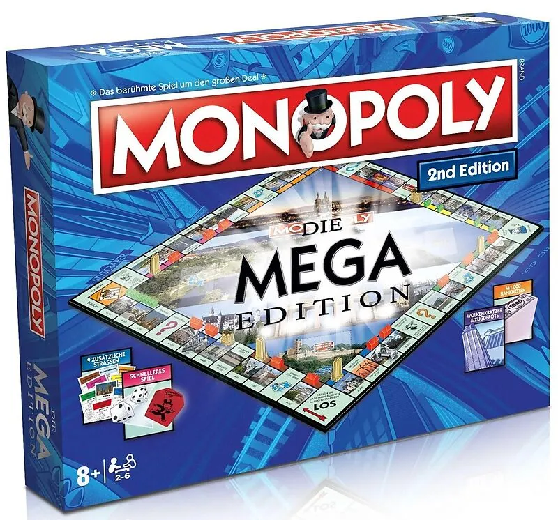 Das brandneue Mega Monopoly mit tollen Bildern und großen Geldbeträgen im Grossformat. Spielmaterial: 1 Spielplan, 8 Spielfiguren, 28 Besitzrechtkarten, 16 Ereigniskarten, 16 Gemeinschaftskarten, 16 Shuttle-Tickets, 1 Satz MONOPOLY Spielgeld, 32 Häuser, 12 Hot...