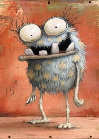 Das schüchterne, kleine Hi!, das Mateo Dineens kuschliges Monsterchen an die Wand schreibt, rührt alle Herzen und zeigt, dass hier niemand Böses im Sinn hat. Gelegte Größe: 50x70 cm. Das schüchterne, kleine "Hi!", das Mateo Dineens kuschliges Monsterchen an di...