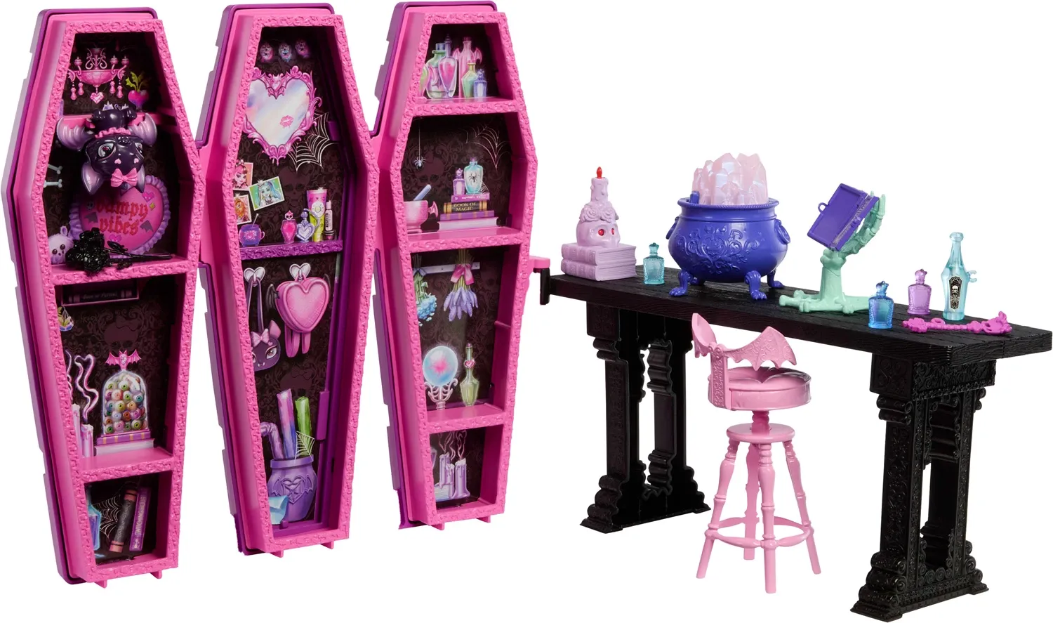 Monster High Draculaura Secret Potion Room Puppen-Spielset mit mehr als 12 Accessoires und überraschenden Verwandlunge Mit diesem Monster-High-Spielset brauen Kinder magische Tränke! Der Draculaura Secret Potion Room strotzt nur so vor überraschenden Verwandlu...