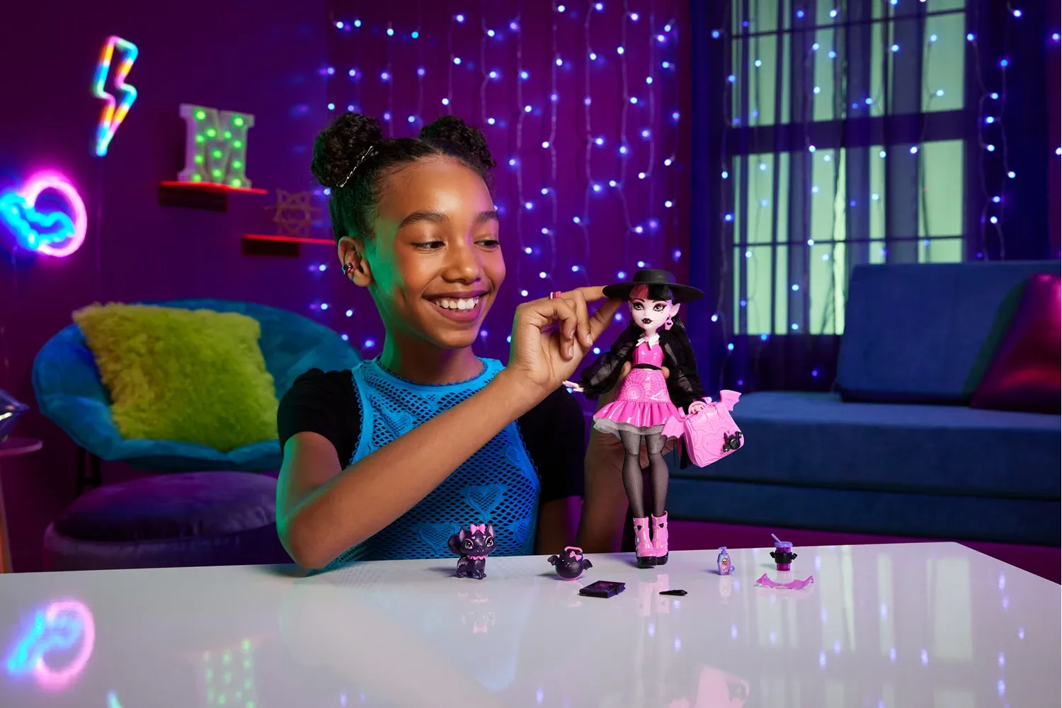 Monster High Refresh Core Draculaura Doll Diese Monster High-Puppe ist eine ganz bezaubernde Vampirin! Draculaura zeigt ihren fangtastischen Modegeschmack und ist von Kopf bis Fuß in Pink und Schwarz gekleidet. Sie hat auch ihre Katze Count Fabulous dabei, die...