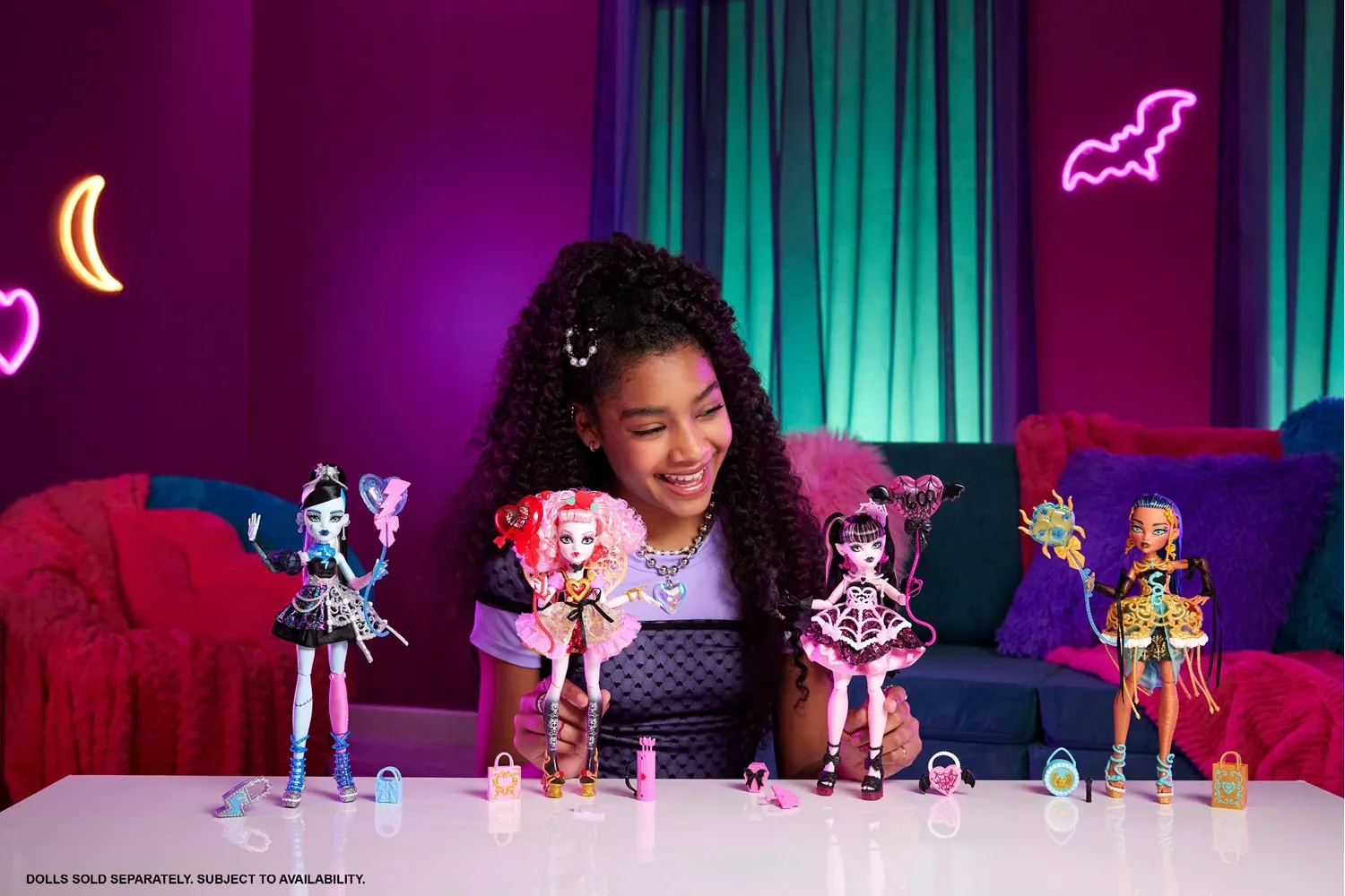 Draculaura wird 1600 und die Schülerschaft der Monster High feiert mit einer Scary Sweet Birthday-Party! Die Puppe ist bereit für einen gruseligen Auftritt in einem schicken Outfit und mit Party-Zubehör.