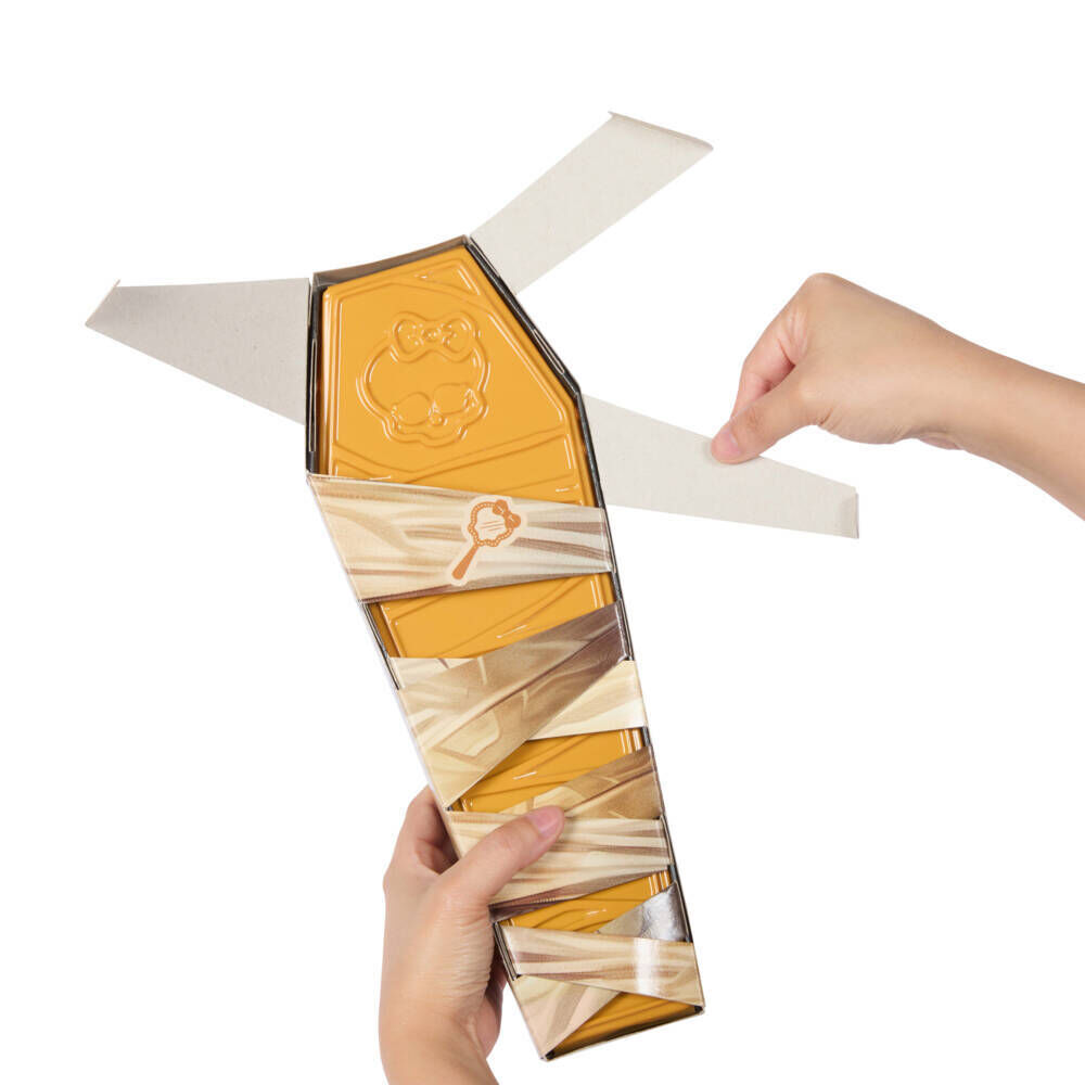 Wo hat sich die Grusel-Crew versteckt? Die Monster High Buried-Secrets-Puppen sorgen beim Auspacken für schaurigen Spaß, mit einer geheimnisvollen Puppe und 5 Cozy-Creepover-Accessoires. Nach dem Auswickeln der Mumienbinden wird sich zeigen, welch schrecklich ...