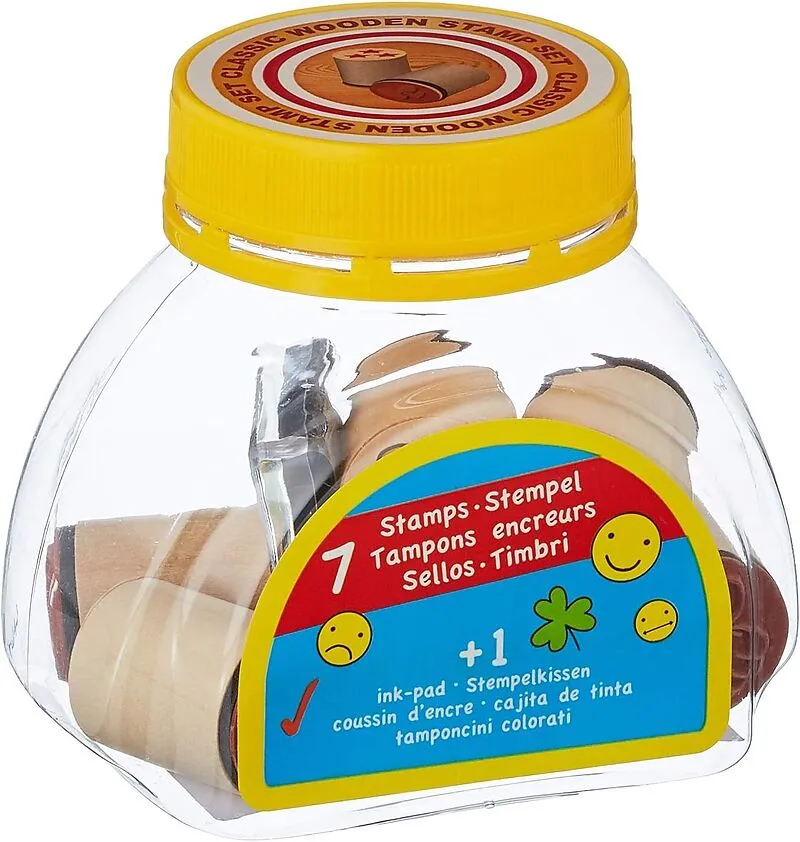 Die "Schul-Stempel" - zum Bewerten von Arbeiten oder Hausaufgaben. Oder einfach nur als Gag für Zuhause. Inhalt: 7 Stempel a 2,5 x 2,2 cm in Dose. Material: Holz. Mit Stempelkissen. Altersempfehlung: 3+ 2,5 cm, Holz, 7 Stempel & 1 Farbkissen in einer...
