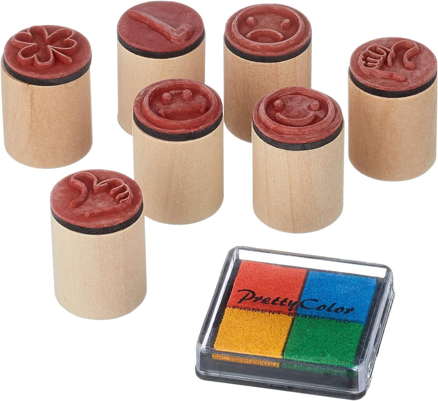 2,5 cm, Holz, 7 Stempel & 1 Farbkissen in einer Dose