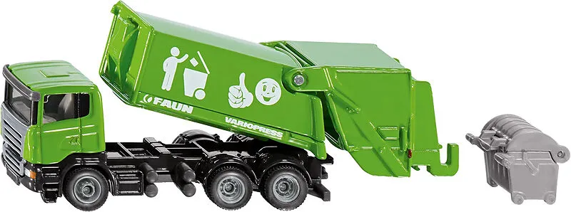 SIKU 1890 Müllwagen 1:87 Originalgetreues Müllentsorgungsfahrzeuges inkl. Großraummüllbehälter als Zubehör zum Spielen und Kombinieren mit weiteren SIKU Spielzeugen - Robustes und stabiles Design, Hebevorrichtung für klappbaren Müllbehälter, Sehr gute Rolleige...