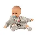 Die kleine Muffin trägt eine coole Jersey-Latzhose, dazu ein Glückspilz-T-Shirt, ihre Lieblings-Zipfelmützen-Jacke und Stoffschuhe, die perfekt zum Outfit passen. Sieht sie nicht einfach nur süß aus'! Die Muffins sind mit flauschiger Watte und Granulat gefüllt...