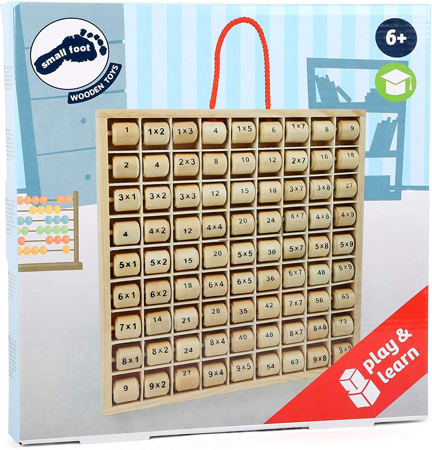 Das kleine Einmaleins immer vor Augen: Hänschen lernt mit diesem Holzrahmen spielerisch die Multiplikation von 1 bis 9. Die drehbaren Holzzylinder zeigen die Lösung und die Aufgabe an funktionieren also auch andersherum: Welche Aufgabe gehört zu dieser Lösung?...