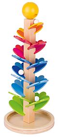 Stilvolles Murmelspiel. Spiralförmig kullern die Murmeln den Turm hinunter und erzeugen dabei angenehme Klänge.