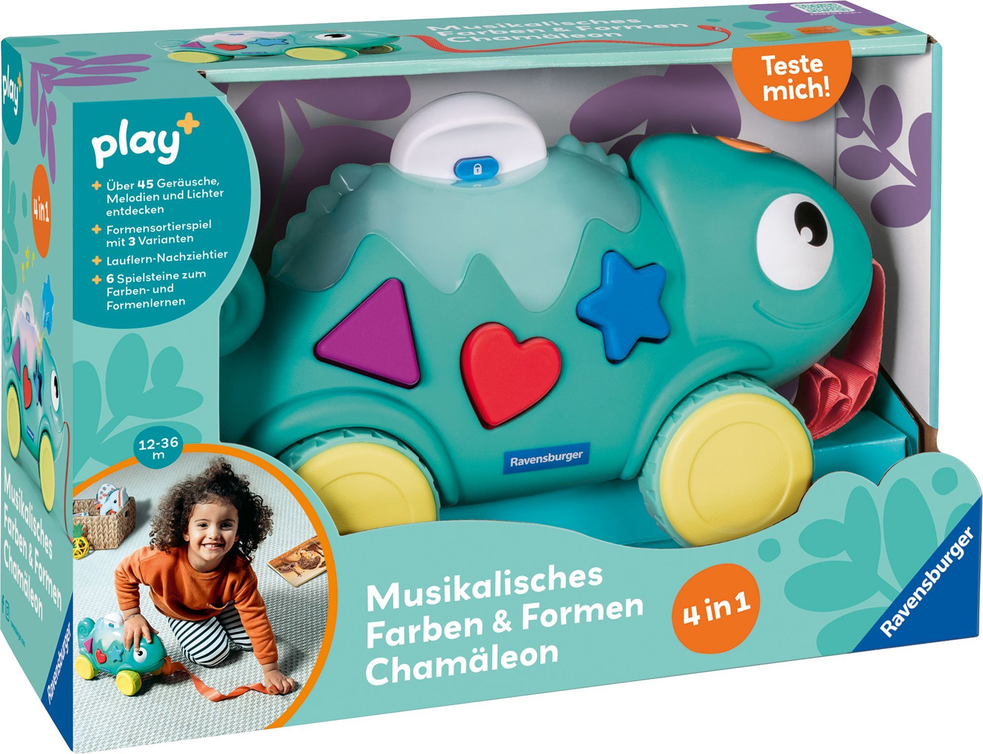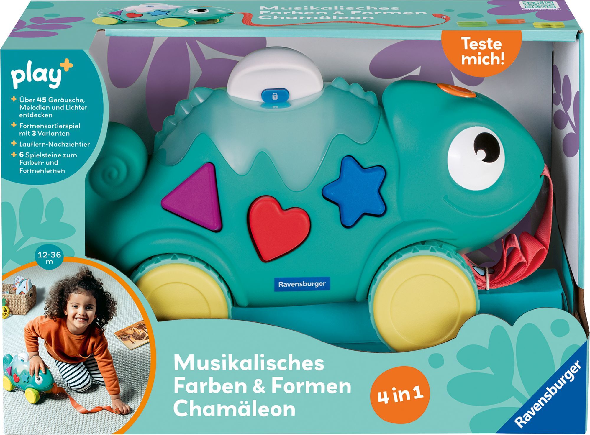 Ravensburger 4875 Play+ Musikalisches Formen und Farben Chamäleon, Farben- und Formensortierer, mit Licht- und Soundef Auf die Klötze, fertig, los! Farben, Formen und Musik animieren Kinder ab 1 Jahr zum freien Spielen und Entdecken. Dazu gibt es lustige Geräu...