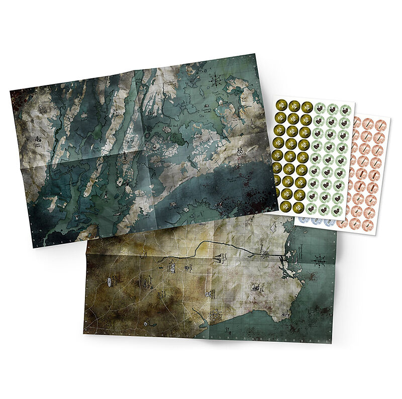 Diese Marker werden eingesetzt, um die Ressourcen des Spiels darzustellen und papierlos zu führen. Die beiden beigefügten Karten zeigen die Zonen "Dead Apple" und "Big Smoke" genannt werden. Spätestens, wenn ihr sie erkundet, werdet ihr erk...