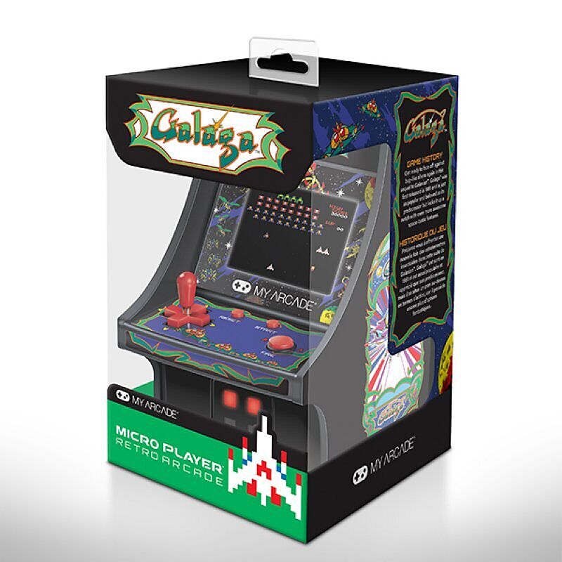 Offiziell lizenzierter Bandai Namco™-Titel. Vollfarbiger 2,75"-Bildschirm. Mit Grafiken, die vom Original-GALAGA™-Arcade-Schrank inspiriert sind. Abnehmbarer Joystick. Eingebauter Lautsprecher mit Lautstärkeregler. 3,5 mm Kopfhöreranschluss zum Ans...