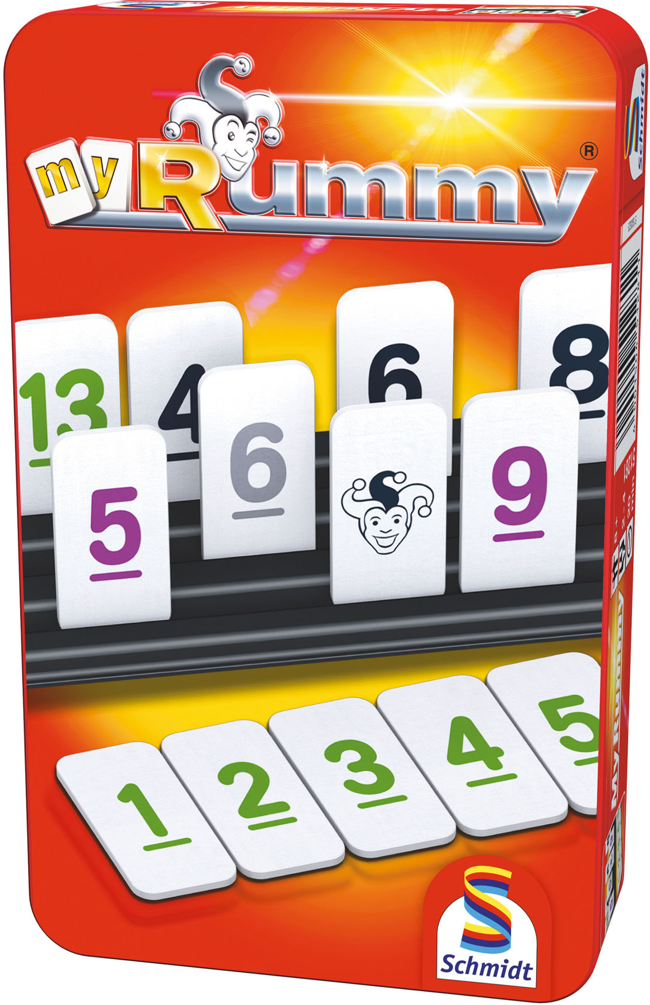 Schmidt Spiele MyRummy Mitbringspiel in der Metalldose Nicht nur der Name erinnert an das berühmte Kartenspiel. Doch gibt es bei MYRUMMY mehr Kombinationsmöglichkeiten, mehr Spannung und mehr Spaß. Und das im handlichen Format. Für 2 bis 4 Spieler. Ab 8 Jahren...