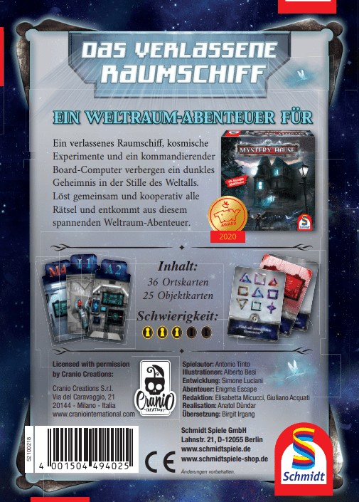Ein neues Science-Fiction-Abenteuer für das mit dem Toy Award ausgezeichnete Mystery House! Ein verlassenes Raumschiff , kosmische Experimente und ein kommandierender Board-Computer verbergen ein dunkles Geheimnis in der Stille des Weltalls. Löst gemeinsam und...