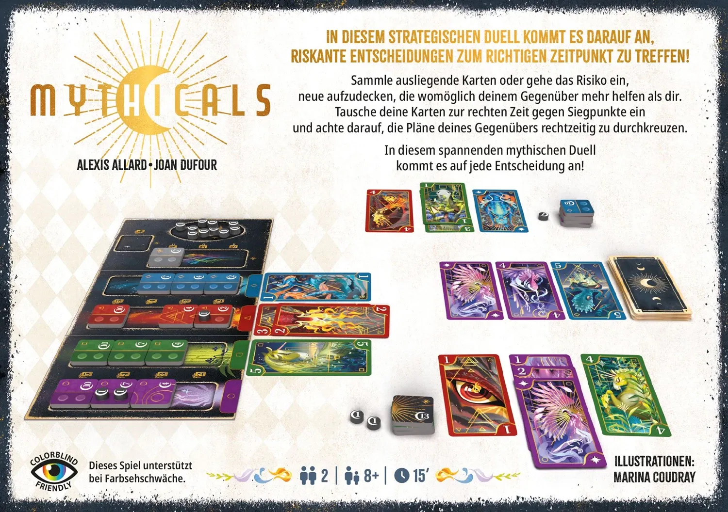 Beim Familienspiel Mythicals tretet ihr in einem strategischen Duell um die magische Energie der wundersamen Fabelwesen gegeneinander an, bei dem es darauf ankommt, riskante Entscheidungen zum richtigen Zeitpunkt zu treffen. Sammelt Fabelwesen in Form von ausl...