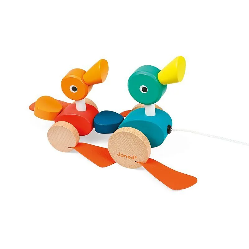Holzspielzeug 21x7.2x12cm für Kinder von 12 bis 36 Monaten mit Wasserfarben bemalen. Führe die Entenfamilie durch das Haus. Die Pfoten der Enten drehen sich im Rhythmus des Spaziergangs.