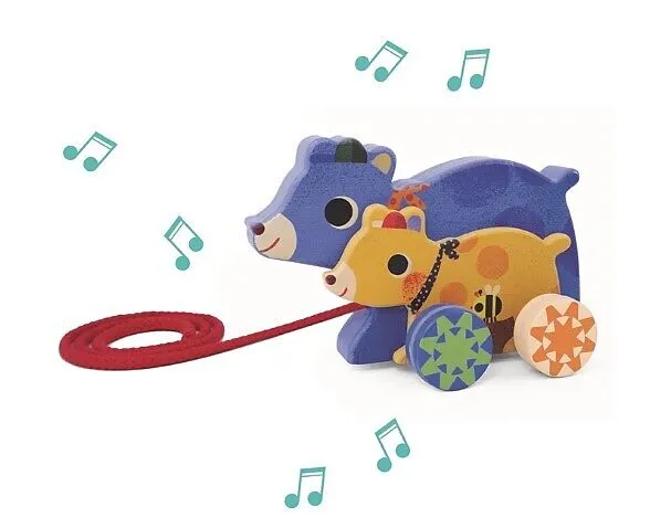 Teddybären zum Nachziehen, die beim Rollen eine süsse Melodie spielen.Alter: + 18 Monate