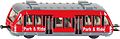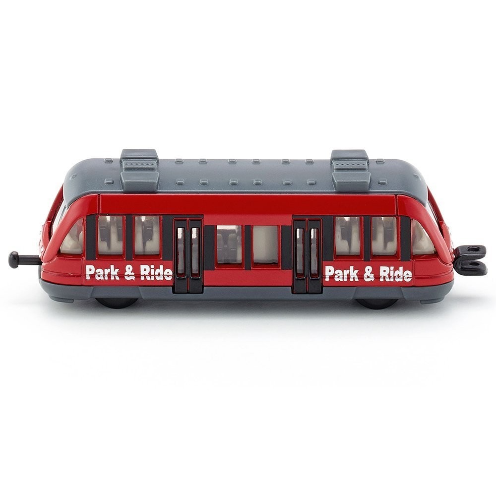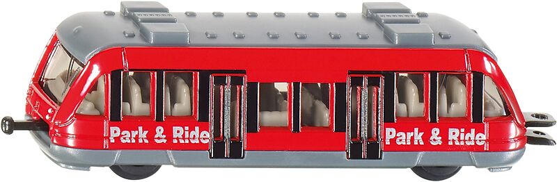 Metallmodell eines Nahverkehrszugs in kleinem Maßstab. Leichtläufige Räder und kindliche Optik. Die Standard-SIKU-Eisenbahnkupplungen an Front und Heck ermöglichen das Ankoppeln weiterer Nahverkehrszugmodelle.