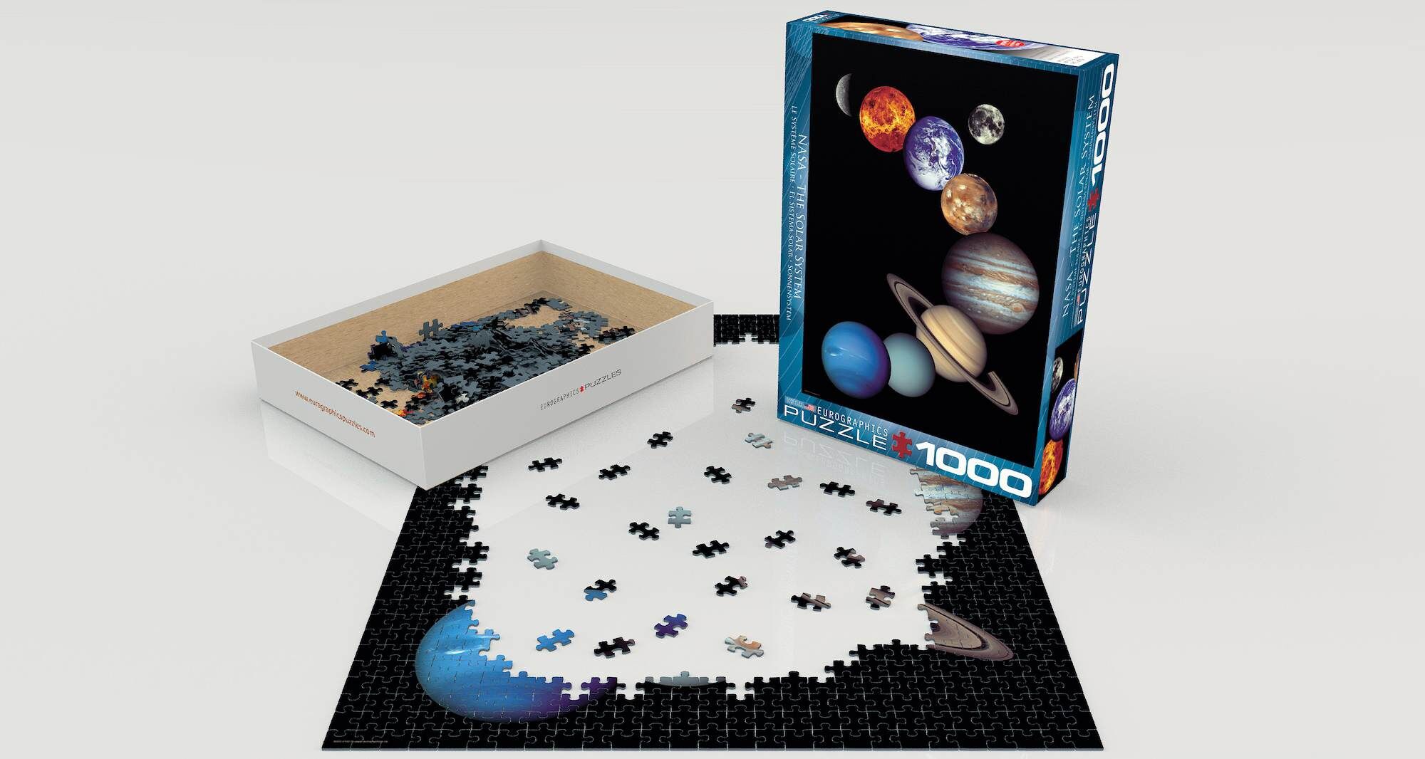NASA Sonnensystem Smart-Cut Technology ist ein innovativer Herstellungsprozess, der das Stanzen von einzigartigen Puzzleteilformen mit perfekter Passgenauigkeit erlaubt. Wie bei Schneeflocken gibt es keine zwei Stücke, die gleich sind. Ihr Puzzlehobby wird dad...
