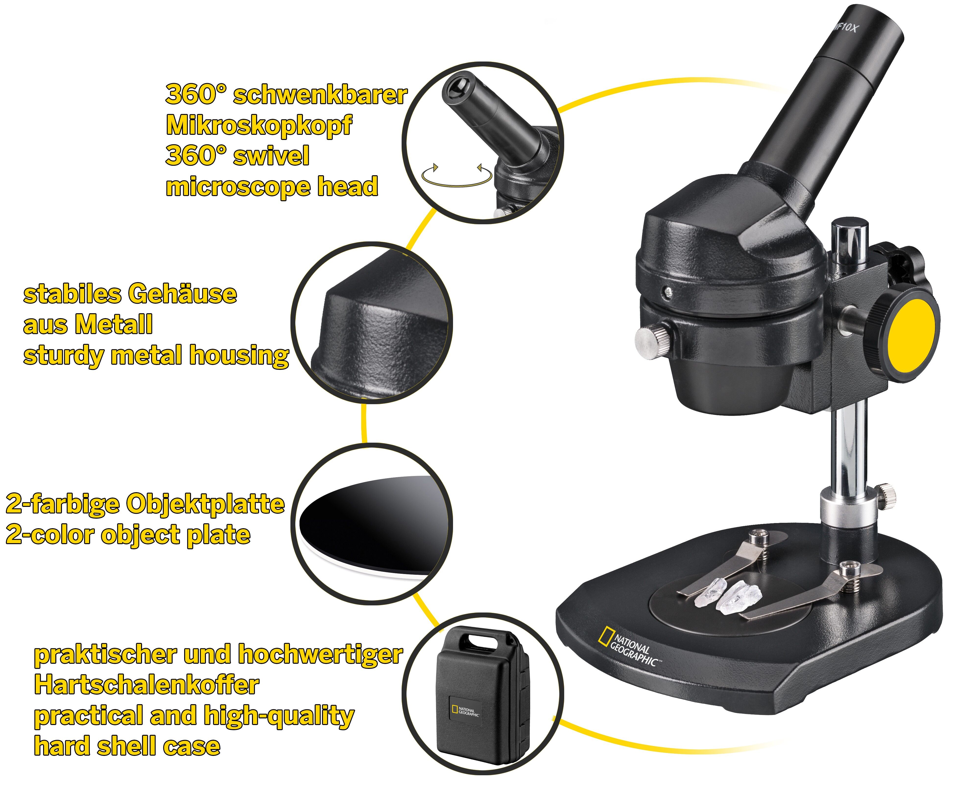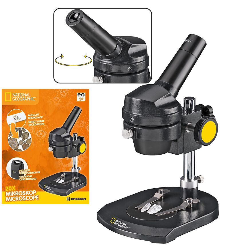 Das NATIONAL GEOGRAPHIC Auflichtmikroskop mit einer 20-fachen Vergrößerung bringt dir die Welt des Mikrokosmos näher! Das kompakte und stabile Auflichtmikroskop ist ein tolles Einsteigergerät! Dank des schwenkbaren Mikroskopkopfes kannst du das Mikroskop so au...