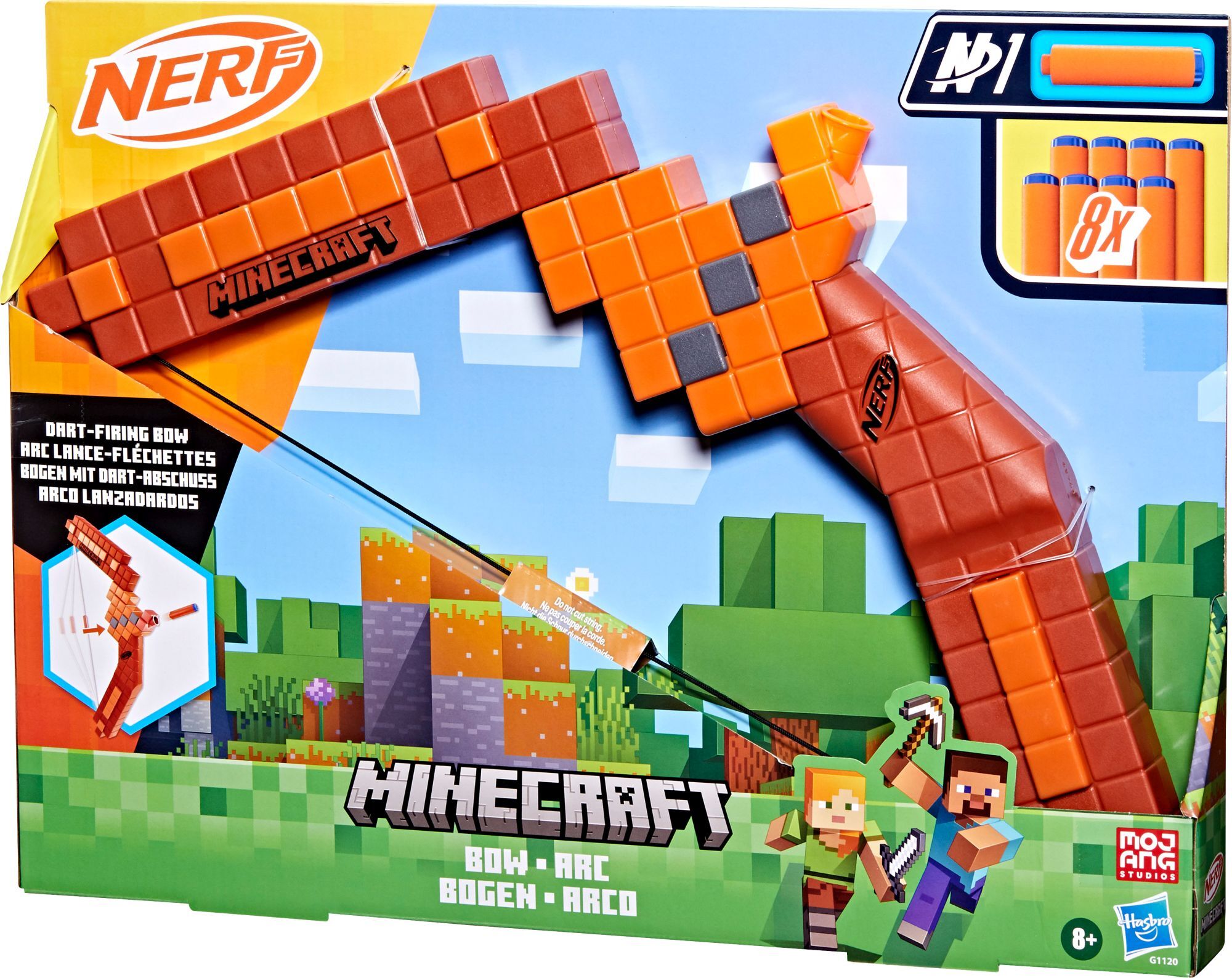 Nerf Minecraft Bogen Hier verbindet sich Nerf mit Minecraft, um unverwechselbare Blaster für Nerf Spiele zu kreieren! Der Nerf Minecraft Bogen ist durch den Bogen aus dem beliebten Spiel inspiriert. Hiermit kann man die Action des Bogens mit hoher Reichweite a...