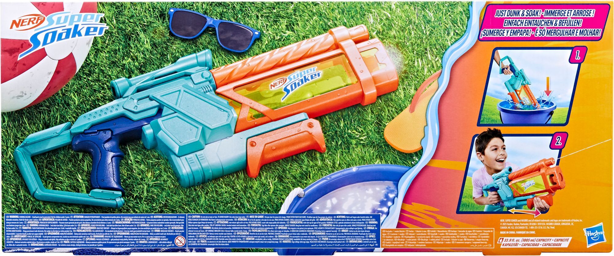 Nerf Super Soaker Mega Dunk-Fill Der Nerf Super Soaker Mega Dunk-Fill Wasserblaster bietet einen einfach zu befüllenden Tank, damit man im Handumdrehen ins Spritzerlebnis eintauchen kann. Durch das innovative Design lässt sich der Tank superschnell befüllen. E...