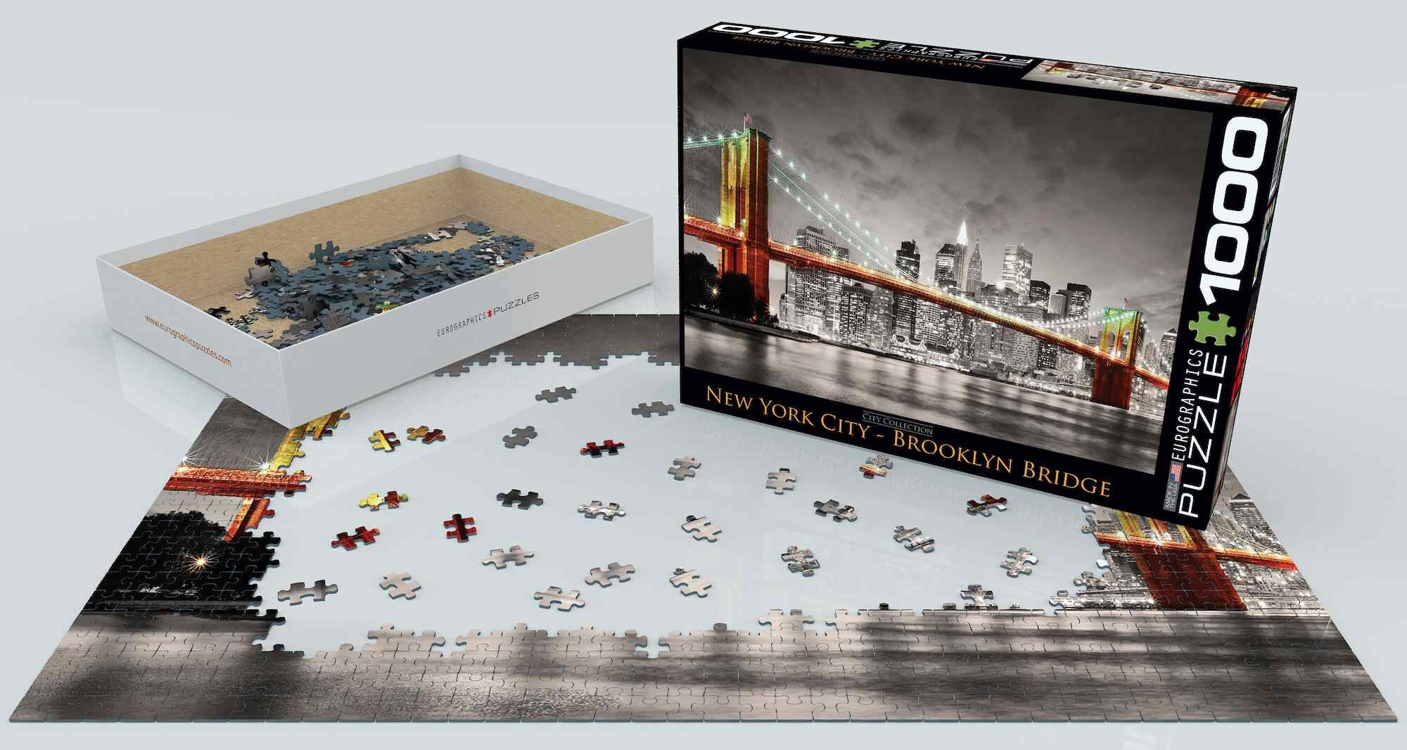 New York City Brooklyn Bridge Smart-Cut Technology ist ein innovativer Herstellungsprozess, der das Stanzen von einzigartigen Puzzleteilformen mit perfekter Passgenauigkeit erlaubt. Wie bei Schneeflocken gibt es keine zwei Stücke, die gleich sind. Ihr Puzzleho...