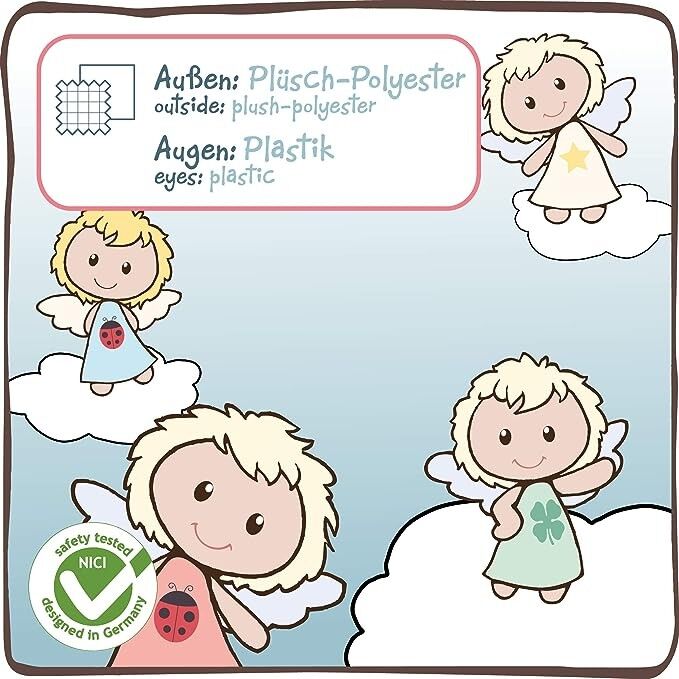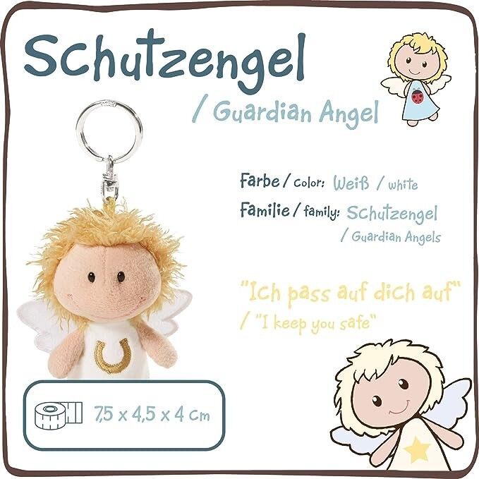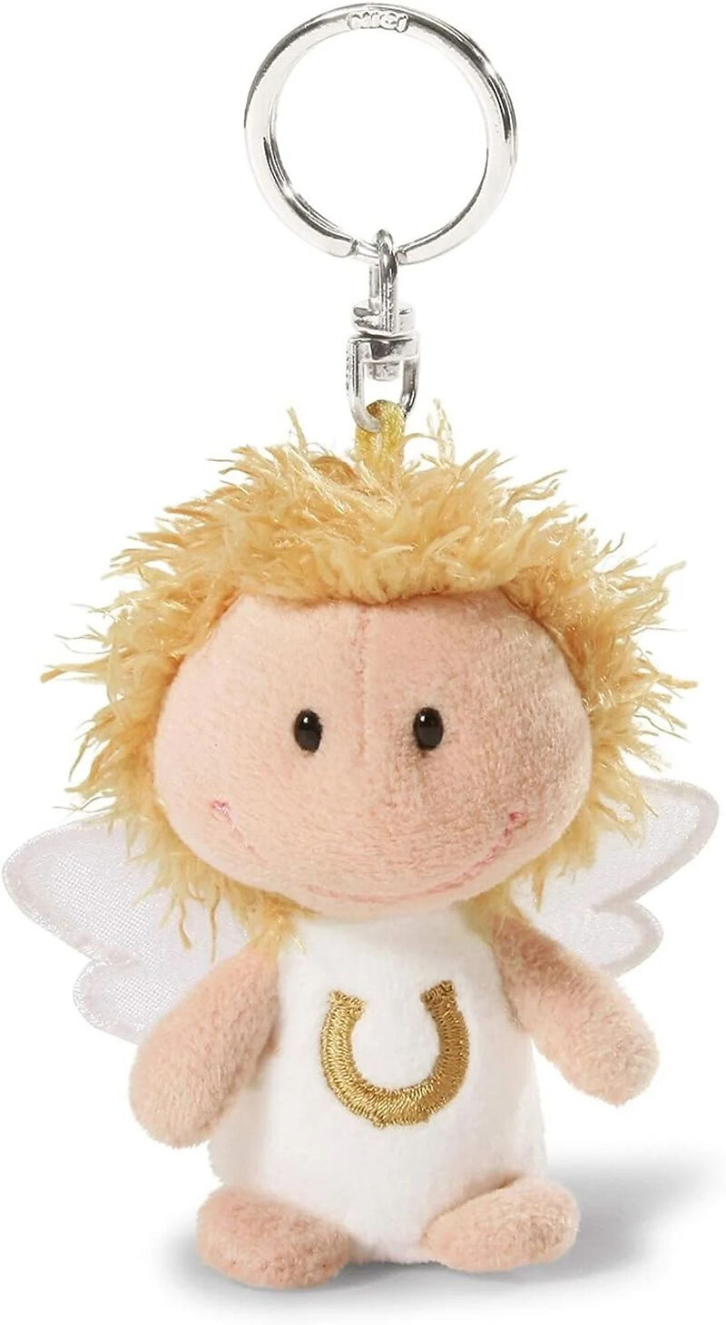 Ein Engel-Schlüsselanhänger aus Plüsch von NICI ist ein toller Glücksbringer. Das Engelchen hat goldblondes Haar und trägt ein weißes Kleid, auf dem ein goldenes Hufeisen aufgestickt ist. Maße H/B/T: 7,5 x 4,5 x 4 cm Bean Bags von NICI - das Original vom Erfin...