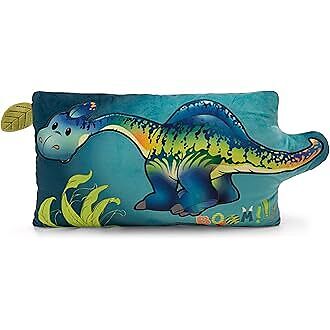 Mit dem rechteckigen Plüschkissen aus der beliebten NICI Dino Kollektion liegen kleine und grosse Dino-Fans immer richtig! Das kuschelweiche, bunt bedruckte Kissen punktet mit einem hochwertigen Farbdruck des imposanten Langhals-Dinos Snackilus, aufwändigen Pl...