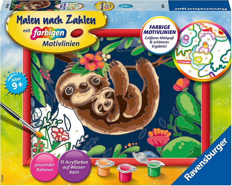 Dieses Komplettset enthält eine Maltafel mit Malfeldern in altersgerechter Grösse, Acrylfarben in wiederverschliessbaren Näpfchen, einen Qualitätspinsel und einen passenden, hochwertigen Bilderrahmen. Anleitung und Vorlageblatt inkl.