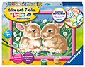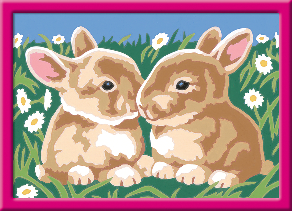 Maltafel mit Malfeldern, 10 Acrylfarben in wieder- verschliessbaren Näpfchen, Qualitätspinsel, Bilderrahmen, Anleitung und Vorlageblatt. Mit farbigen Motivlinien. Die Acrylfarben auf Wasser- basis trocknen schnell.
