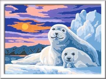 Farbige Motivlinien: Größerer Malspaß & schöneres Ergebnis! Dank der farbigen Motivlinien, die die Malfelder umranden, können die Kinder das ganze Motiv Niedliche Robben und die Farben schneller erkennen. Der Pinsel hat eine gute Führung und so entsteht nach u...