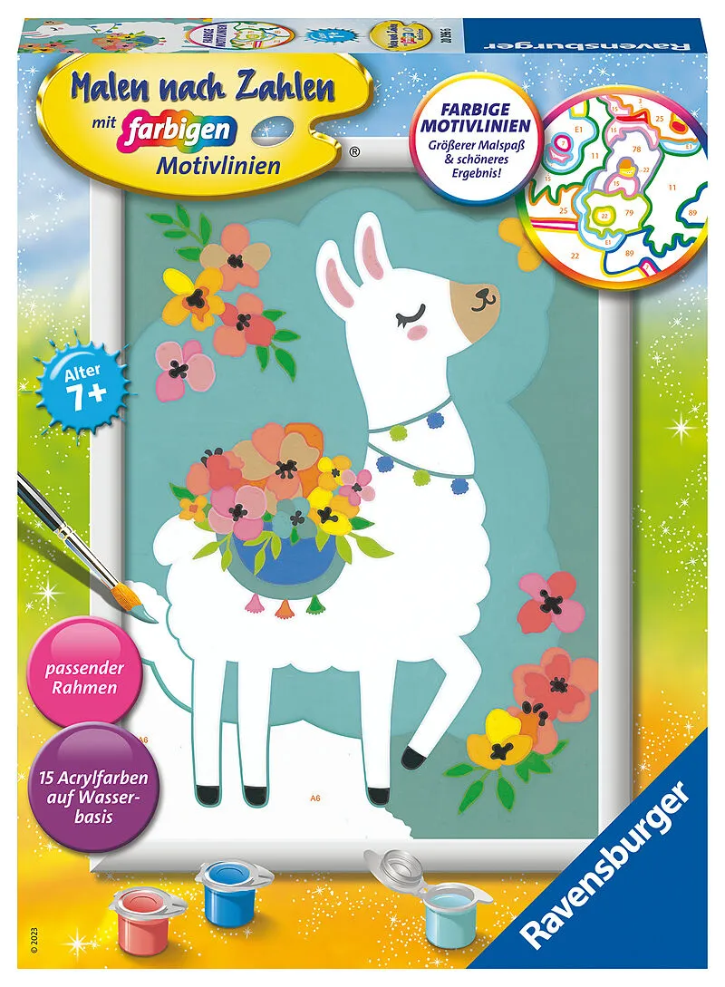 Farbige Motivlinien: Größerer Malspaß & ein schöneres Ergebnis! Dank der farbigen Motivlinien, können die Kinder das ganze Motiv No Probllama und die Farben schneller erkennen. Der Pinsel hat eine gute Führung und so entsteht nach und nach ein perfektes Bild.D...