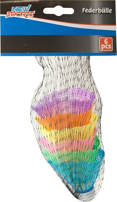 New Sports Federbälle, bunt, 6 Stück im Beutel. Länge 7cm. Für Kinder ab 3 Jahren.
